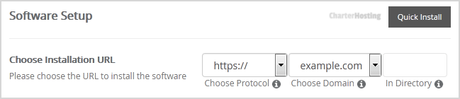 • Choose Installation URL: Choose the appropriate protocol/domain. Inside the "In Directory" field, should you want to install this in a directory, i.e., example.com/directory, enter the directory name. Otherwise, leave it blank to install in your main domain, i.e., example.com.