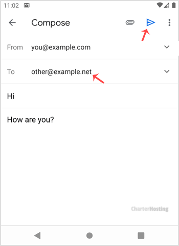 3. Enter the email address of the person to whom you want to send your email in the To Field, an email subject, and your message. Then click on the Send icon.