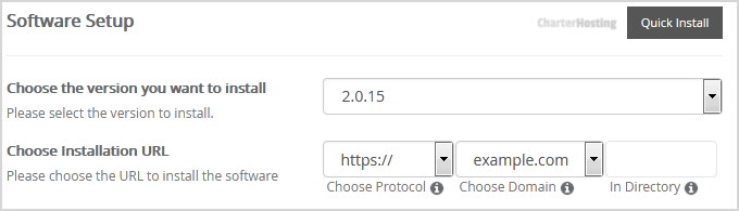 • Choose Installation URL: Choose the appropriate protocol/domain. Inside the "In Directory" field, should you want to install this in a directory, i.e., example.com/directory, enter the directory name. Otherwise, leave it blank to install in your main domain, i.e., example.com