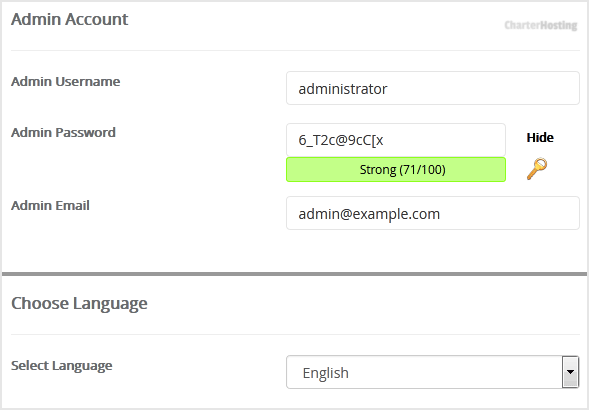 • Admin Username: Your new Website Baker username (for security reason do not use the Administrator or the Admin username.)