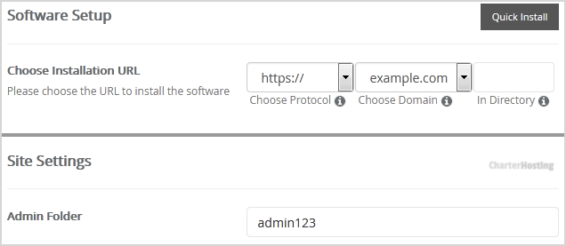 • Admin Folder: Enter the name of your admin folder, such as admin123.