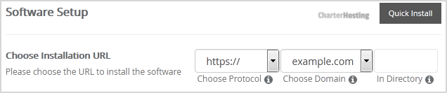 • Choose Installation URL: Choose the appropriate protocol/domain. Inside the "In Directory" field, should you want to install this in a directory, i.e., example.com/directory, enter the directory name. Otherwise, leave it blank to install in your main domain, i.e., example.com