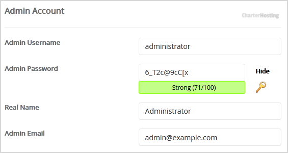 • Admin Username: Your new Saurus username (for security reason do not use the Administrator or the Admin username.)