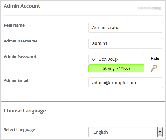 • Admin Username: Your new PluXml username (for security reason do not use the Administrator or the Admin username.)